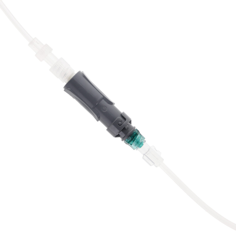 Qimofemale is a multi-purpose, closed, needle-free, I.V. connection device for blood sampling, intermittent injections or continuous infusions of fluids or drugs. Qimofemale has a very easily disinfectable membrane (disinfection must be carried out before and after use) which closes automatically when the infusion line or the syringe is disconnected.At the distal end, Qimofemale has a male Luer-lock connection allowing it to be connected to a venous catheter or an I.V. accessory with a female Luer-lock hub (intravenous catheter, extension tube, Huber needle for infusion in an implantable port, stopcock, ramp of stopcocks, spike ...).