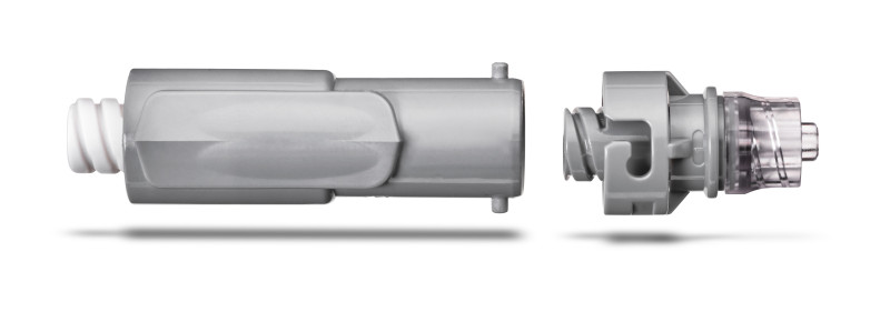 Qimomale can only be connected to the female Luer bayonet end of Qimofemale, by placing the lugs of Qimomale into the notches of the bayonet ring of Qimofemale.