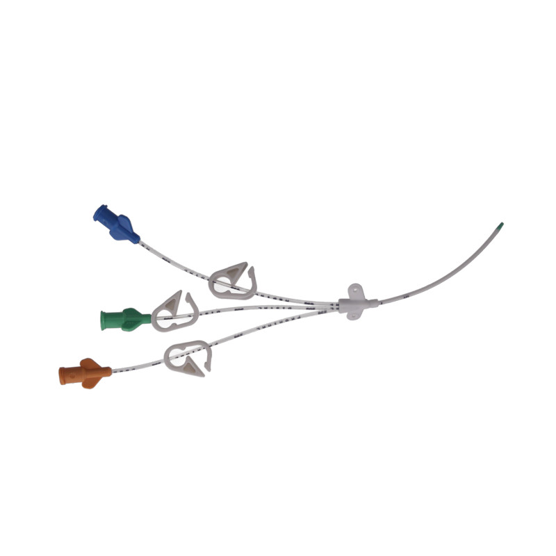 Multicath 3 (paediatric model) is a triple-lumen radiopaque polyurethane central venous catheter inserted in the internal jugular, subclavian or femoral vein using the Seldinger technique.At the proximal end, the 3 lumen of the catheter are connected to extension tubes of different lengths; besides each extension tube is marked "DISTAL", "MEDIUM" or "PROXIMAL" and includes a different coloured hub so as to identify easily the different infusion lines. Extension tubes fitted with Robert clamps.